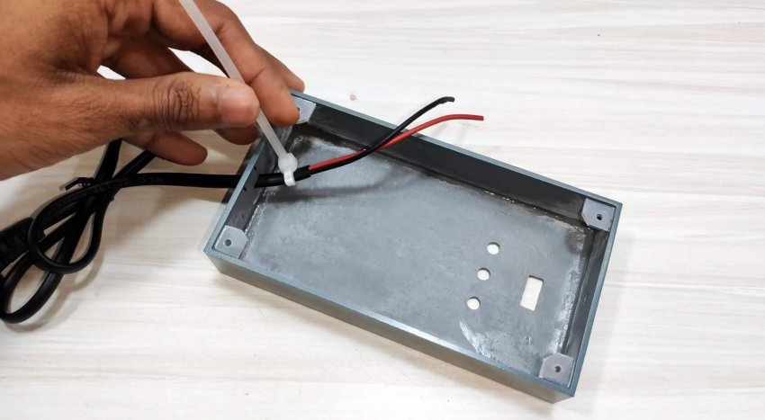 Переходим к сборке блока. Пропускаем сетевые провода и фиксируем нейлоновой стяжкой.