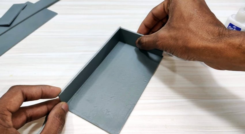 По углам приклеиваются ушки, чтобы было к чему крепить крышку.