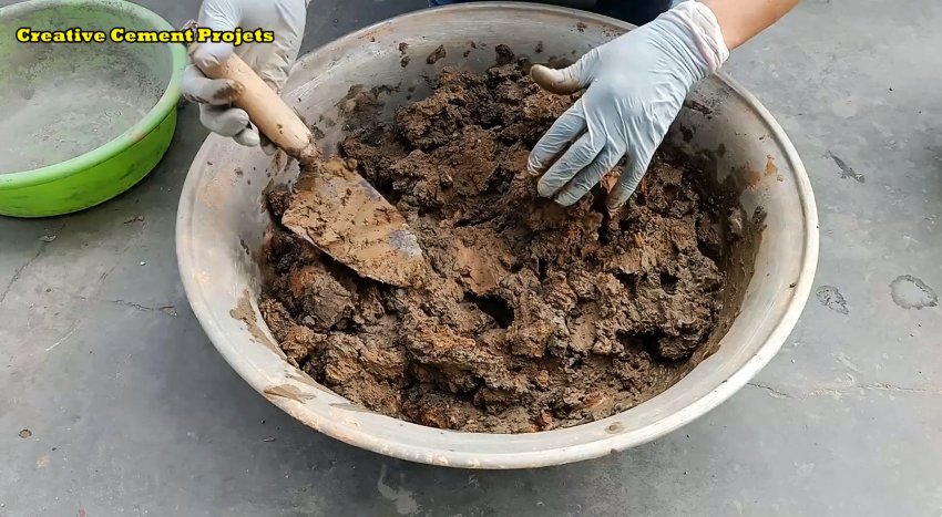 Далее замешивается густой раствор на основе глины, цемента и воды.