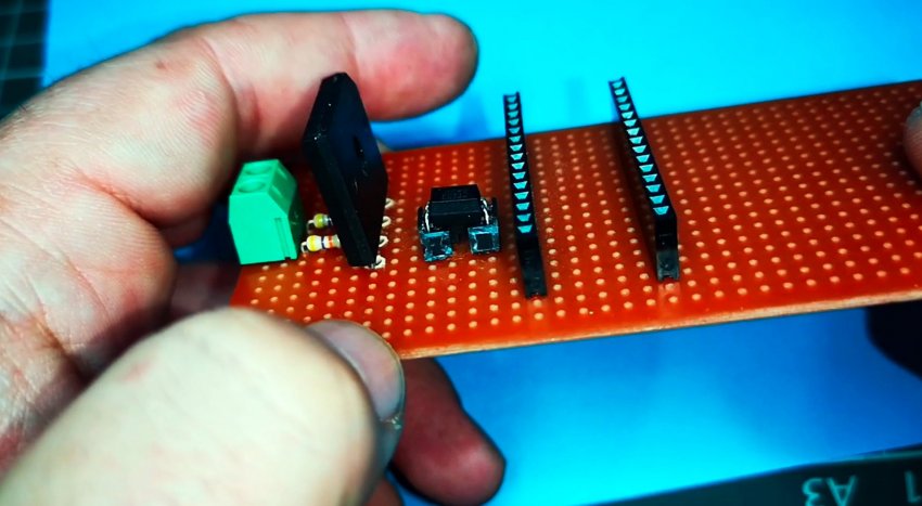 В плате сверлим отверстия и устанавливаем диодный мост.