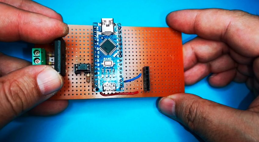 По левую часть Ардуино собран детектор нуля. Он дает сигнал модулю когда синусоидальная волна проходит нулевую отметку, переходя из положительной в отрицательную.