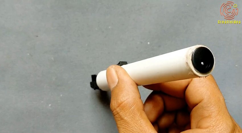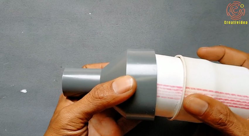 Его следует зафиксировать кольцом из пластиковой трубки подходящего диаметра, или просто обвязать ниткой. В данном случае идеально подошла труба 50 мм.