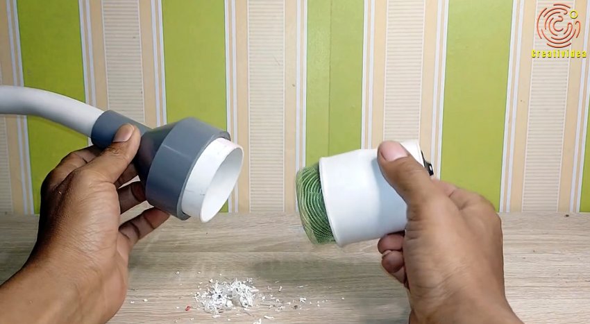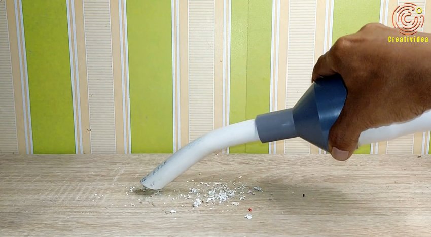 Последний задерживается на сетке, и остается внутри. Такой мини пылесос позволяет собирать крупный мусор. Чтобы его вытряхнуть, достаточно стянуть переходник.