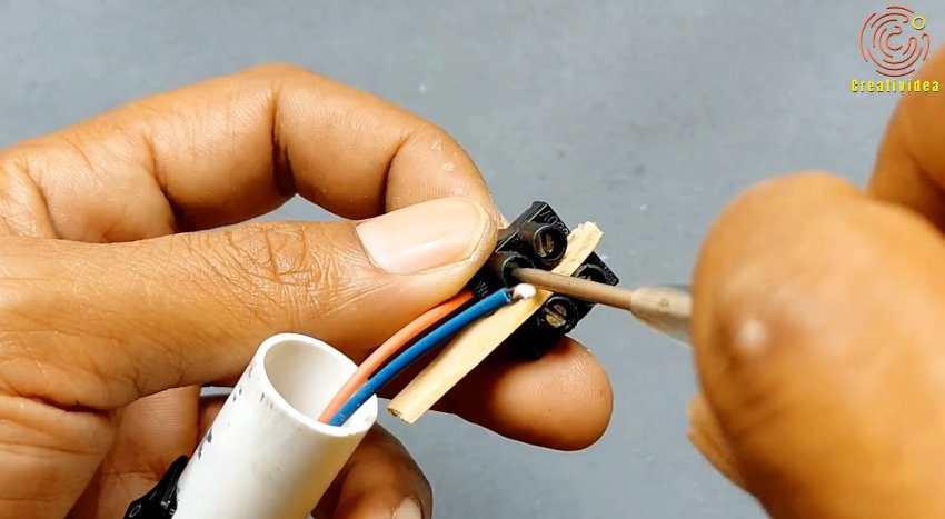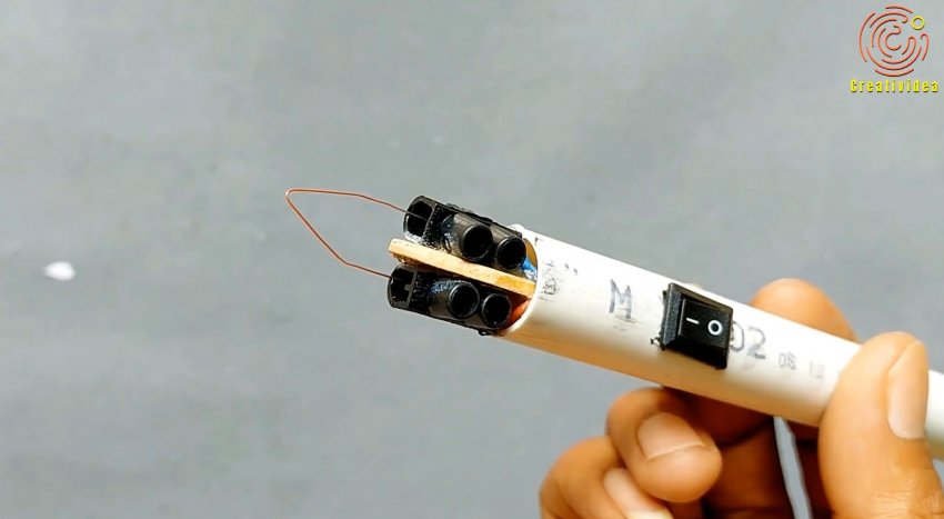 Края проводов нужно зажать в колодке, и вклеить палочку в трубку.