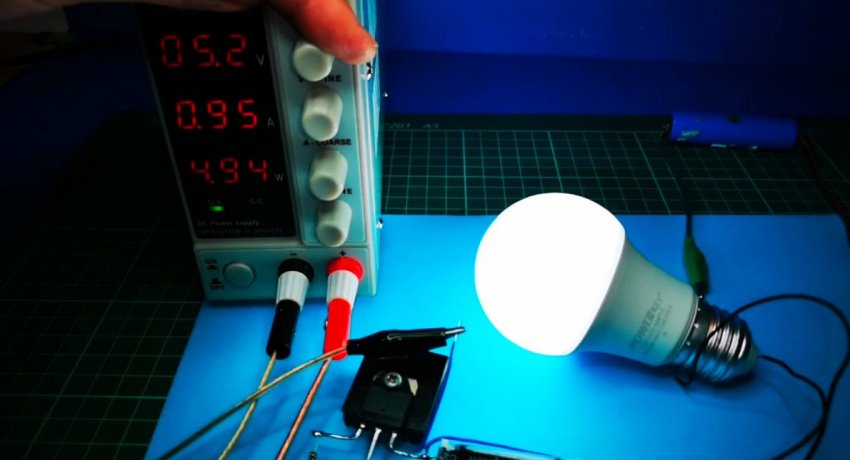 Теперь испытаем преобразователь на более реальной нагрузке - светодиодной лампе.
