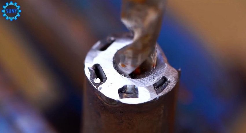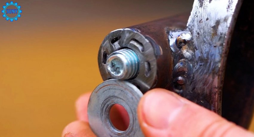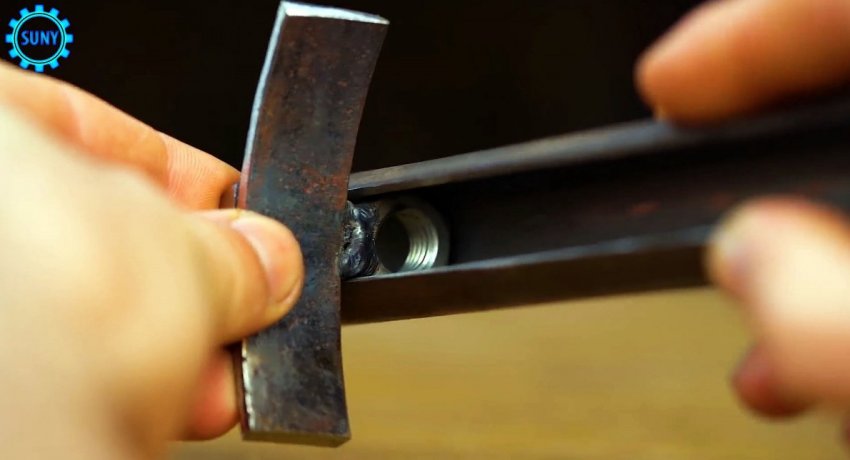 Второй упор нужно приварить к трубе в конце выреза. Затем первая губка с гайкой вставляется в трубку.