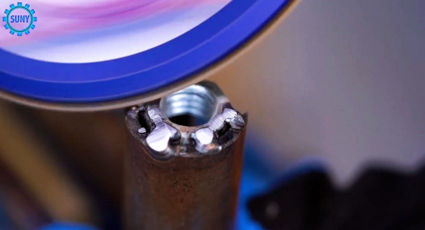 На выходе за неподвижной губкой к ней приваривается шайба.