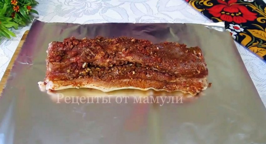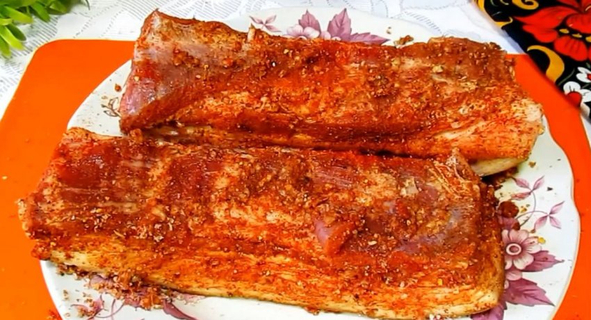 Куски натираются приправами со всех сторон.
