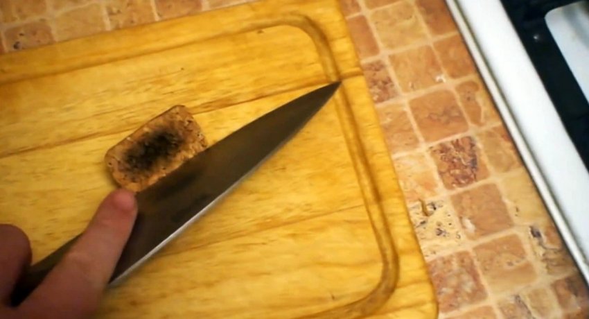 При таком способе пробка выпрямиться, но подгорит внутри. Если ее нужно будет разрезать, то это станет заметным. Для крашеных поплавков она вполне сгодится, но в большинстве случаев уйдет в брак.