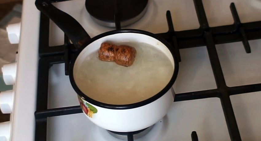 Пробка бросается в кипящую кастрюлю и варится 30-40 мин на медленном огне.