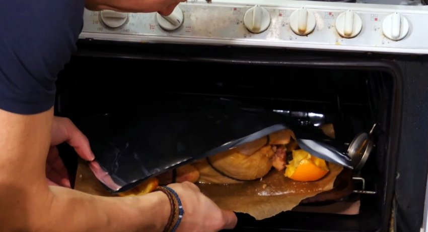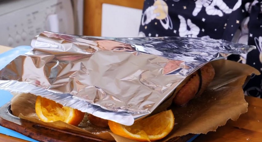 Затем она накрывается фольгой и ставится на 25-35 мин в разогретую духовку до 180°С
