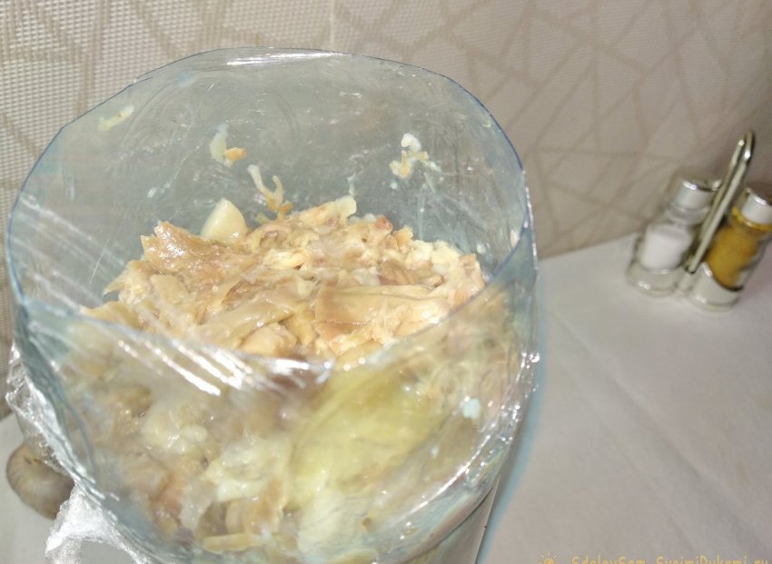 Готовое блюдо необходимо завернуть в пищевую плёнку и хранить в холодильнике.