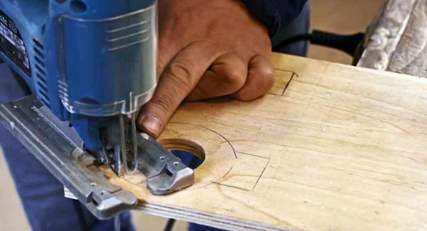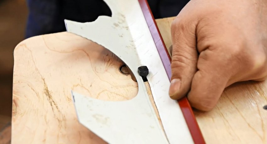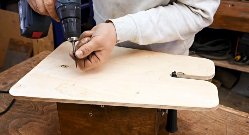 В завершение на станок прикручивается столешница из фанеры с вырезом под ножницы.