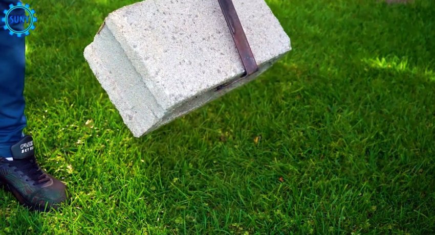Длина подбирается под ваш рост. Этот инструмент можно использовать, чтобы захватывать для переноски пустотелый шлакоблок, кирпич.