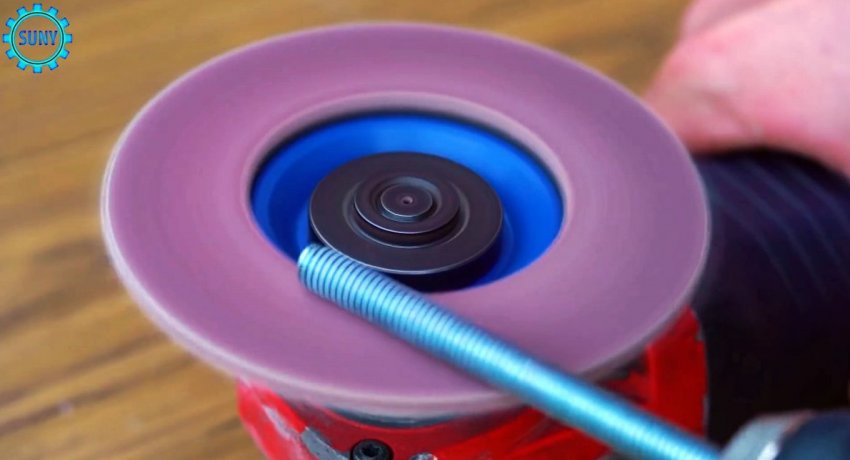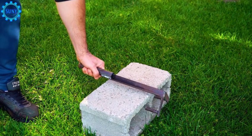 Затем он режется вдоль болгаркой с тонким диском до половины.