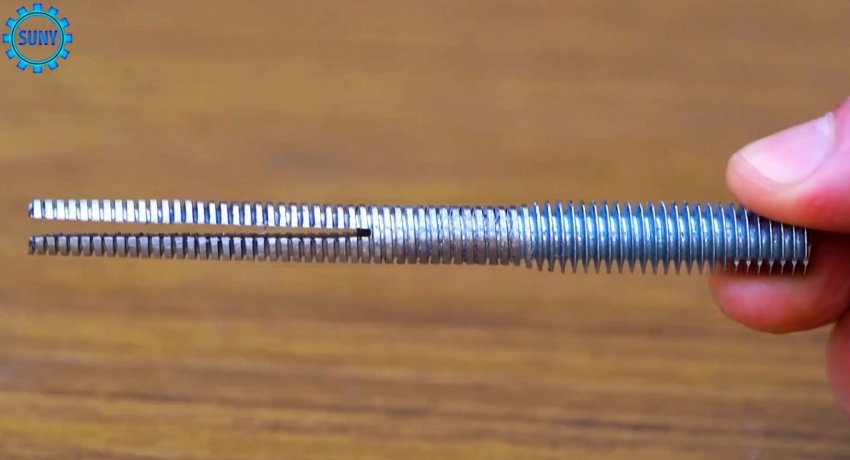 От шпильки М10-М14 отрезается кусок 15 см. Примерно на половину длины его необходимо обточить от резьбы.
