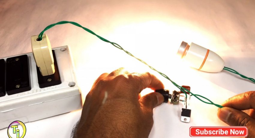 На этом диммер готов. Для проверки припаиваем его в разрыв цепи лампы накаливания.