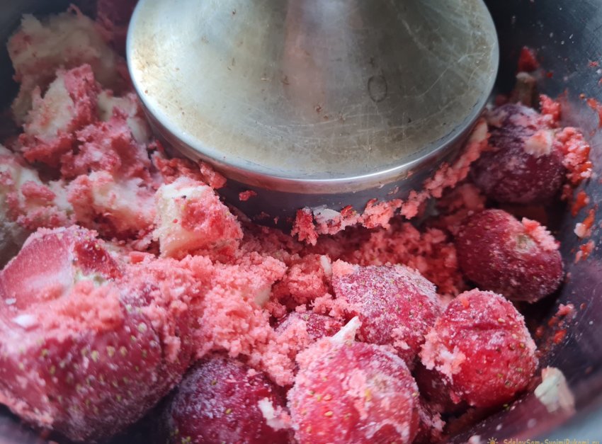 Меняю изредка некоторые продукты в рецепте. Потому что так интересней. Вместо, например, клубники беру любые кисло-сладкие фруктово-ягодные варианты – яблоки, сливы, вишни и пр., которые предварительно замораживаю.