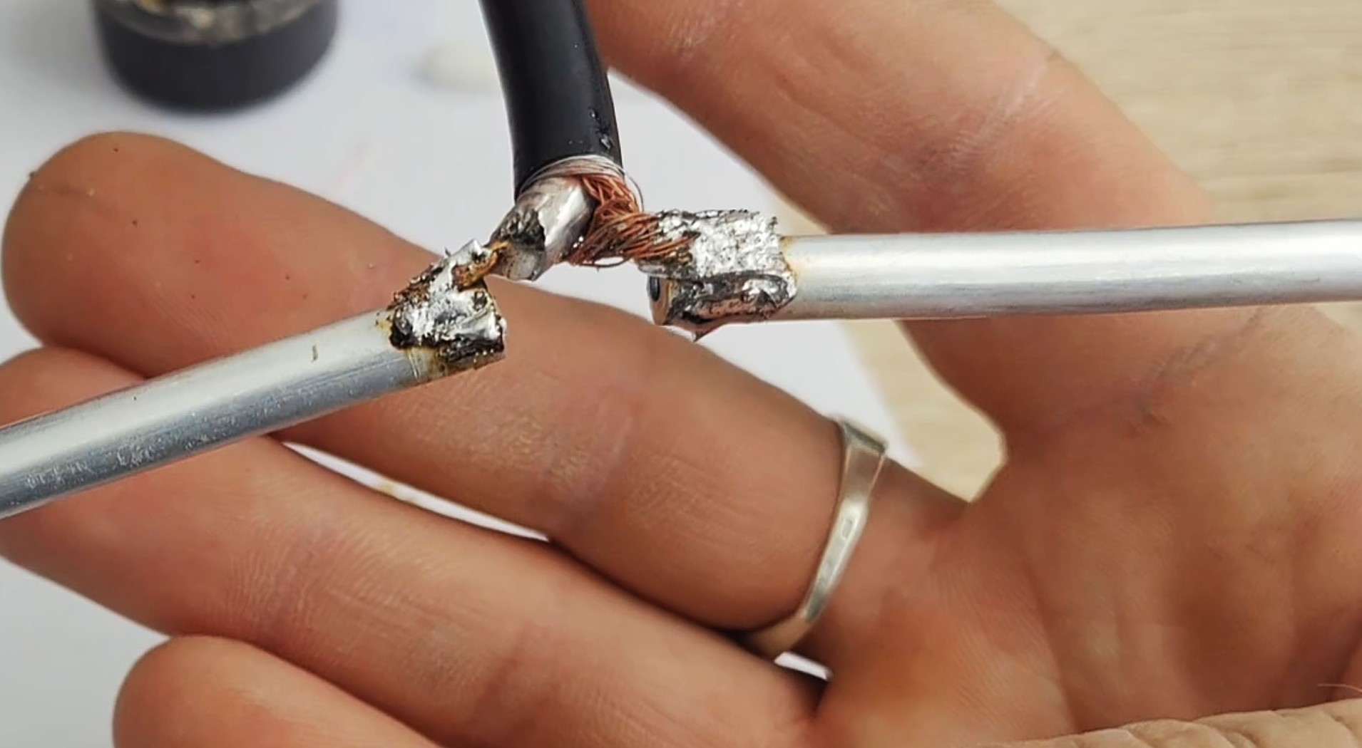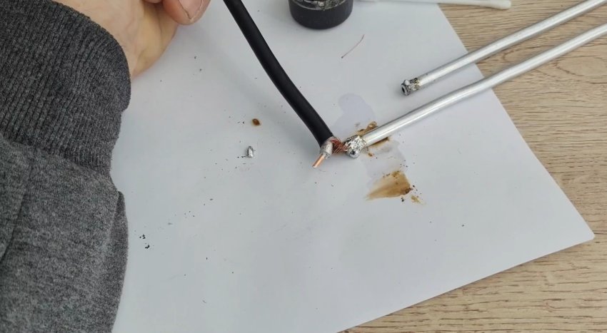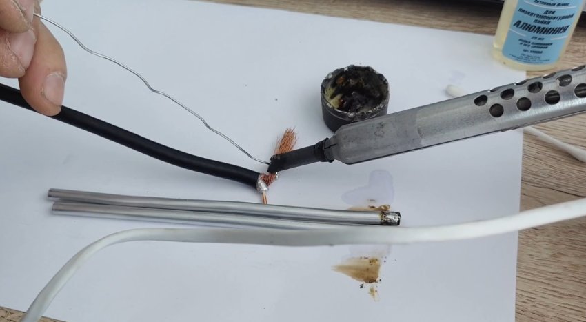 В данном примере покрывалась алюминиевая оплетка кабеля, которая теперь очень легко паяется обычной канифолью с припоем.