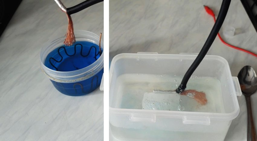 Далее необходимо приготовить раствор медного купороса, электролита и дистиллированной воды по пропорциям приведенным выше.