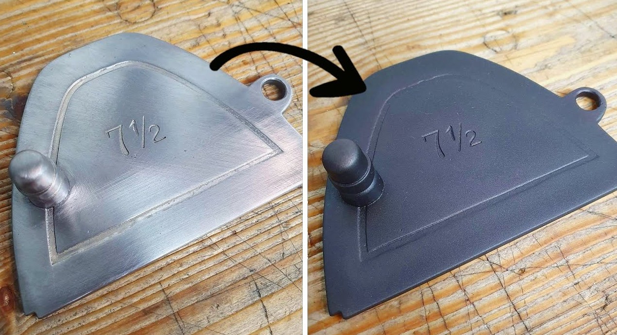 Различные обработки поверхности стали влияют на внешний вид воронения. Мне нравится, как выглядят детали после пескоструйной обработки. Полировка не рекомендуется, так как поверхность останется почти такой же. Если деталь была отшлифована, чрезмерный нагрев может привести к отслаиванию воронения. В этом случае придется удалить неудачное покрытие и повторить процесс.