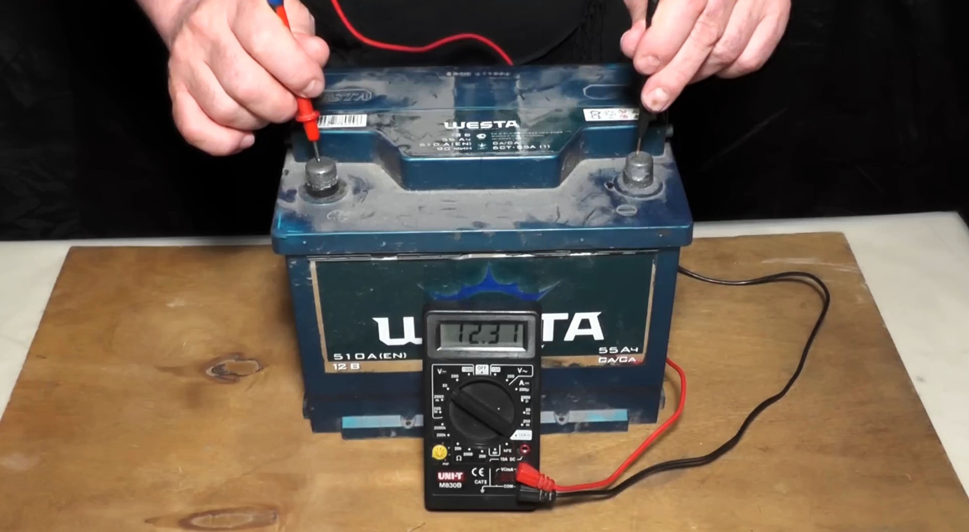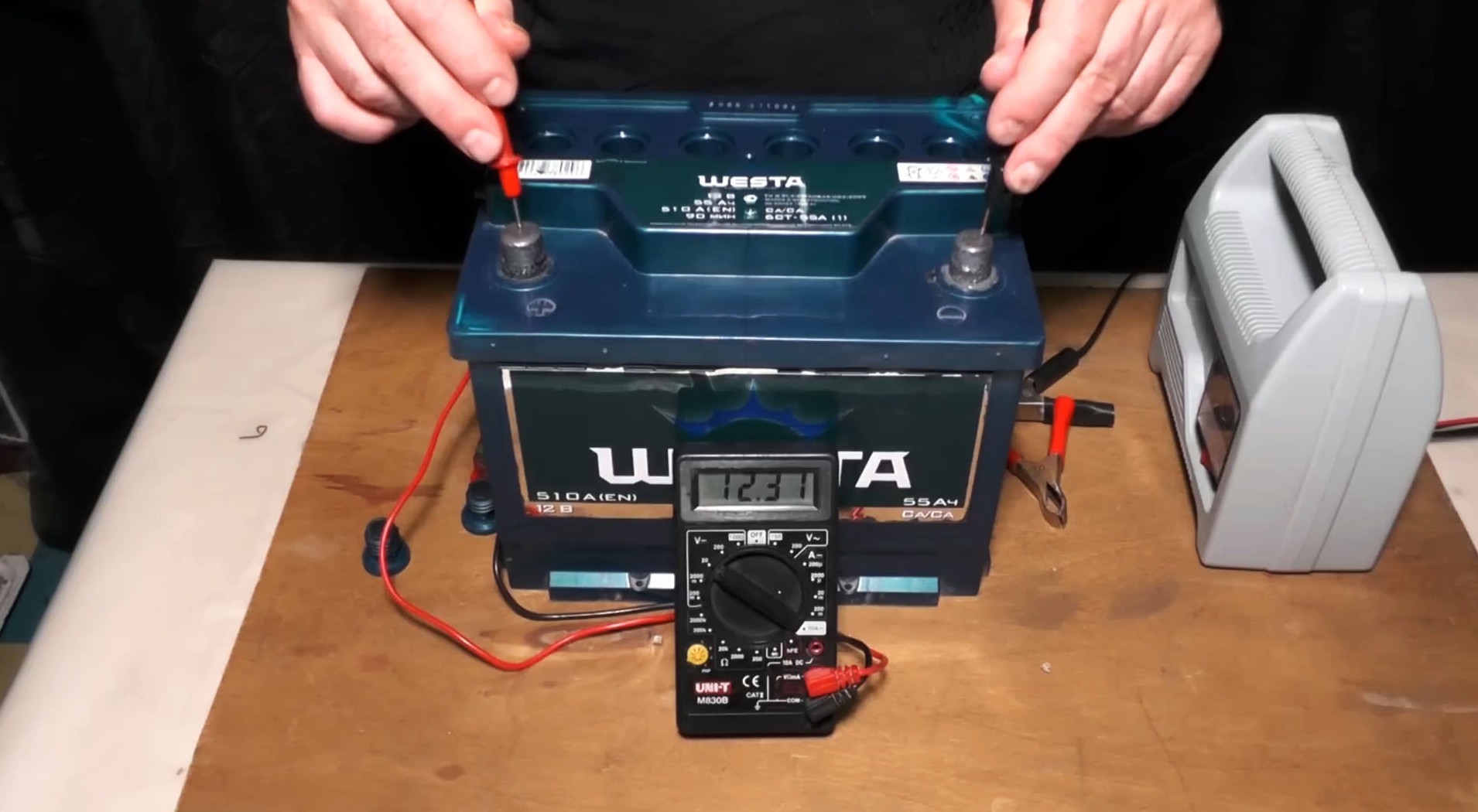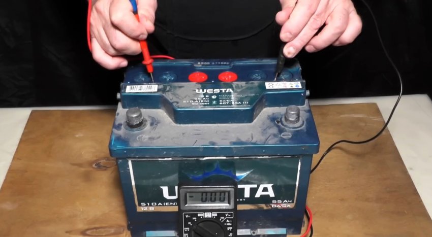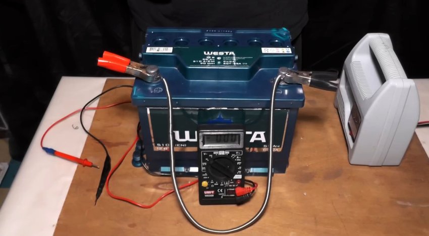 Начнем с измерения напряжения. На экране я вижу 12,3 В. Это неплохое состояние, хотя 12,7 В было бы лучше.