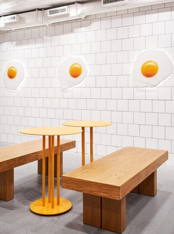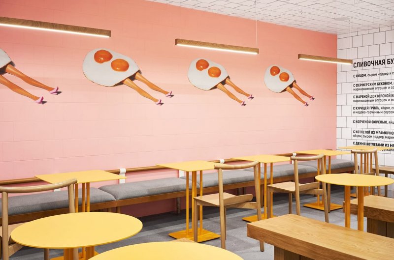 Минималистичный поп-арт в петербургском кафе «Яйцо и булочка» - «Интерьер»