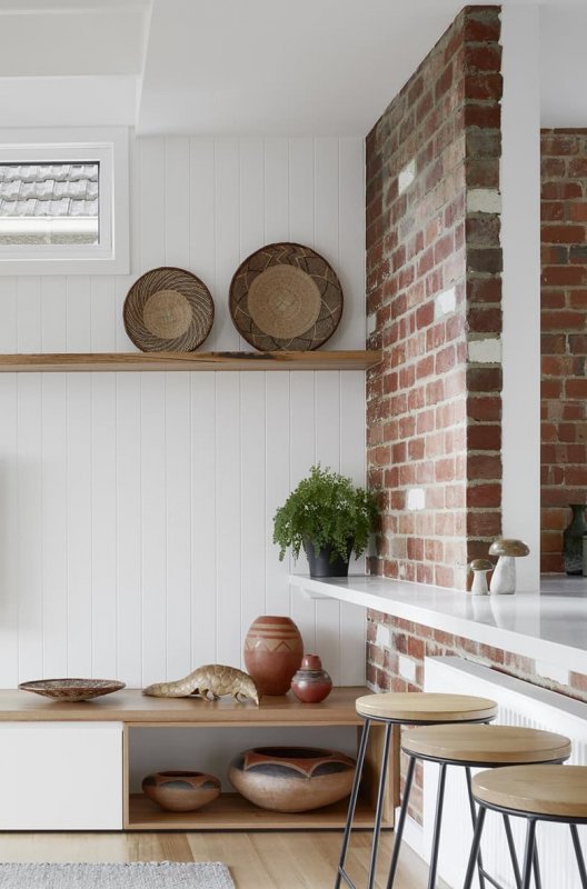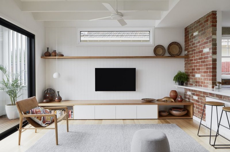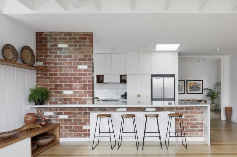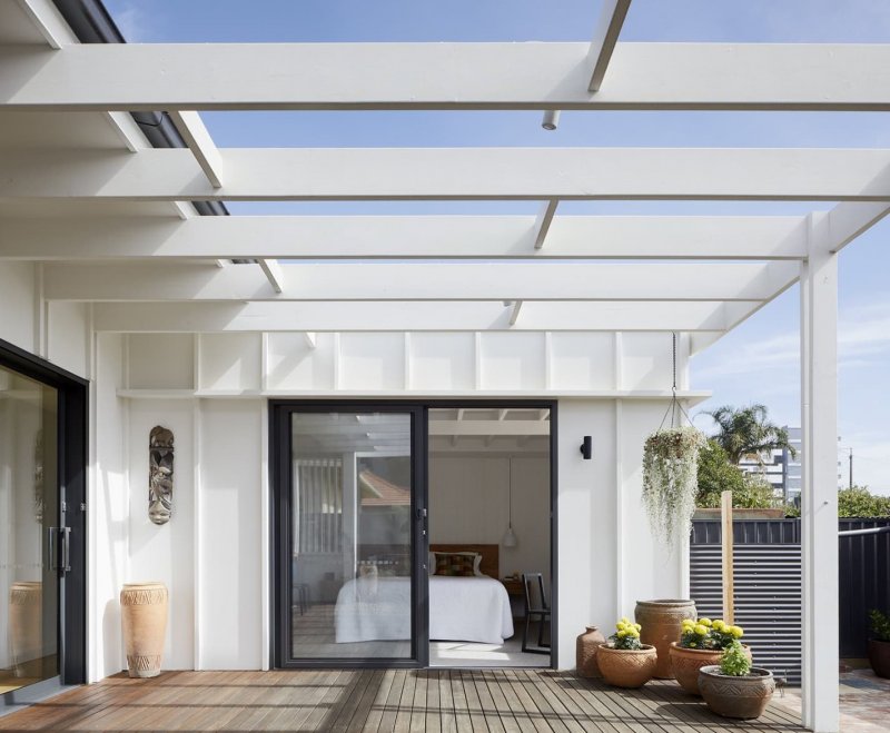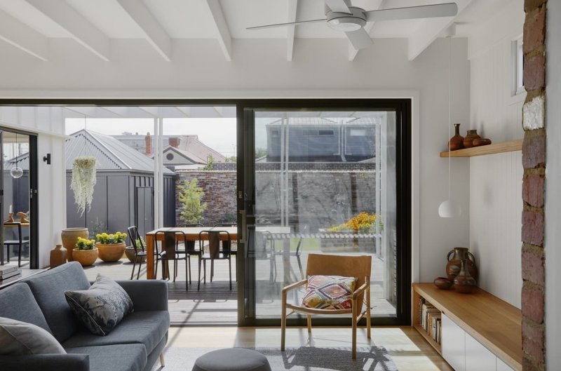 Из полуразрушенного дома начала ХХ века австралийская студия Irons McDuff Architecture соорудила современный комфортабельный особняк с просторной террасой для семейной пары. Команда дизайнеров стремилась использовать существующие материалы, чтобы создать ощущение преемственности. О старом облике дома частично напоминают дощатый пол, вагонка и обнаженная кирпичная кладка.