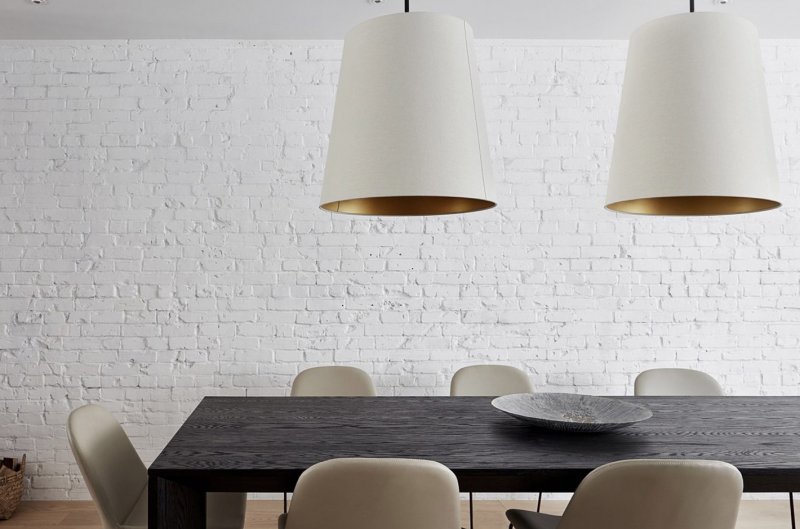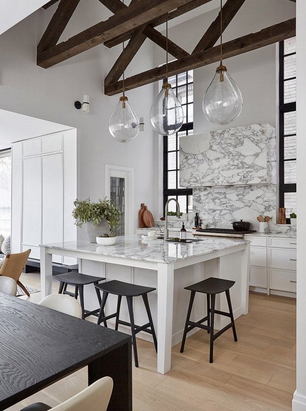 Дизайнеры восстановили кирпичный фасад дома, чтобы он соответствовал эстетике его окрестностей на Евклид-стрит (итальянского района в Торонто). Белые стены и полы, покрытые широкими досками из белого дуба, создают нейтральный и универсальный фон для декора. На нем обыгрываются нескучные сочетания исторически сохранившихся деревянных балок, элементов из черной стали, оконных рам в индустриальном стиле и декоративных каминов. Для большинства акцентов дизайнеры выбрали оттенки белого и бежевого.