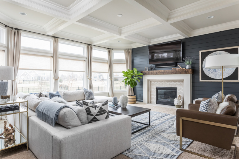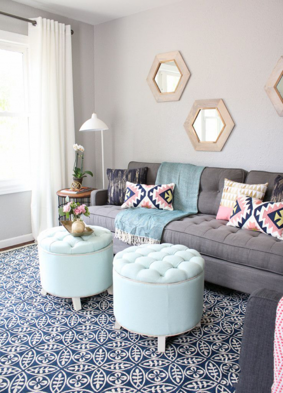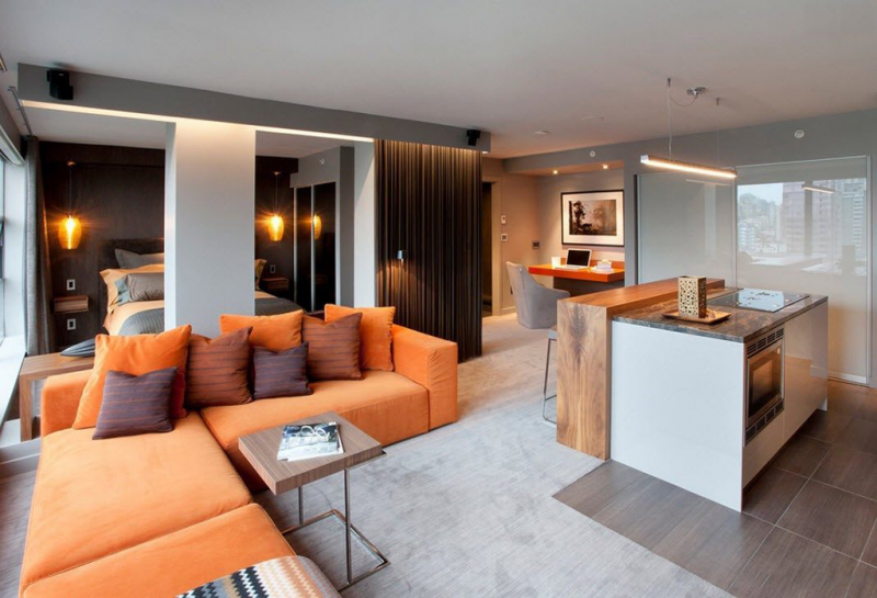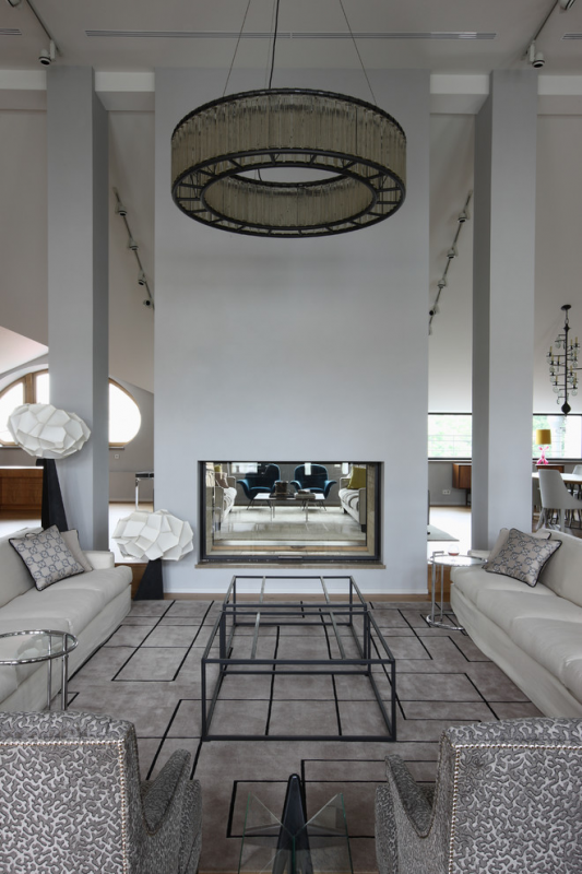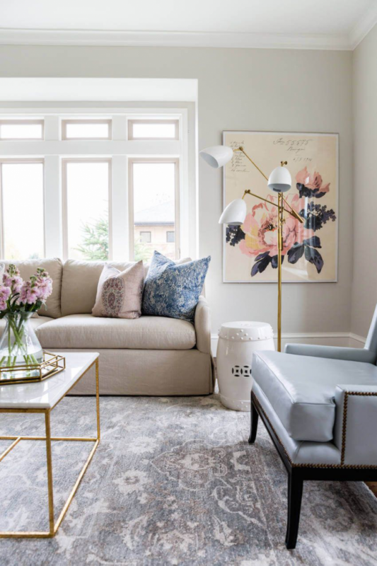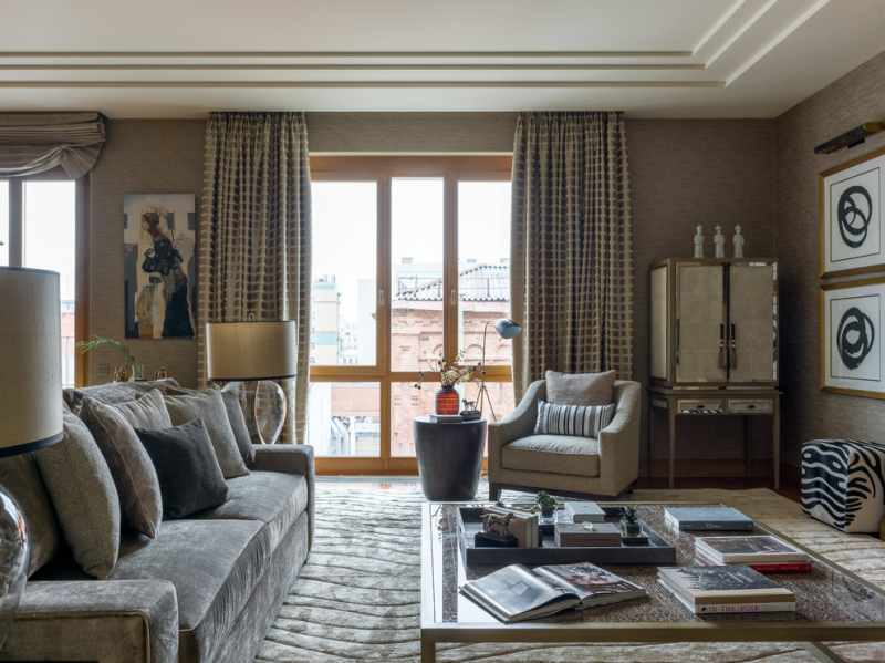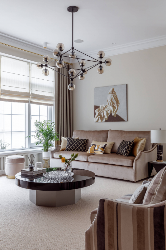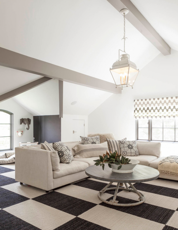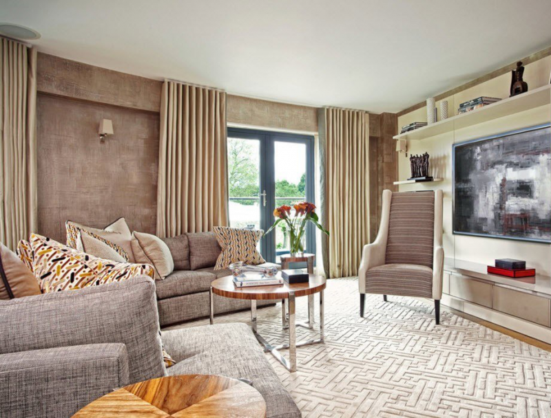Нейтральные оттенки напольного покрытия позволяют выделить другие элементы декора