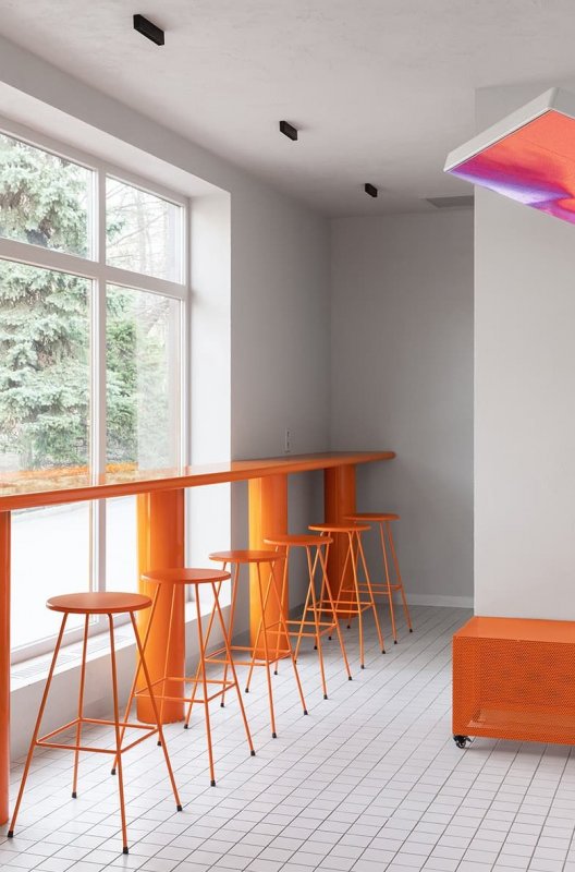 Архитектору — всего 25, а о нём уже пишут такие издания, как Dezeen, Interior, Domus и Elle. Еремчук смело экспериментирует с формой, цветом и стилистикой, при этом не уклоняется от решения практических задач. В интерьере для кафе AND Y архитектор рационально подошёл к вопросу экономии места: бренд Delo создал специально для проекта линейку модульных блоков на колесиках (которые напоминают детский конструктор, а по сути — им и являются). В пространстве кафе можно сидеть на блоках или за ними — двигая элементы так, как в голову взбредёт (просто вспомните игру в «Тетрис»), а можно расположиться на обычном барном стуле у длинного стола. Какой бы выбор вы не сделали, он точно будет ярким — насыщенные апельсиновые оттенки придают свежести сдержанным очертаниям интерьерной композиции.