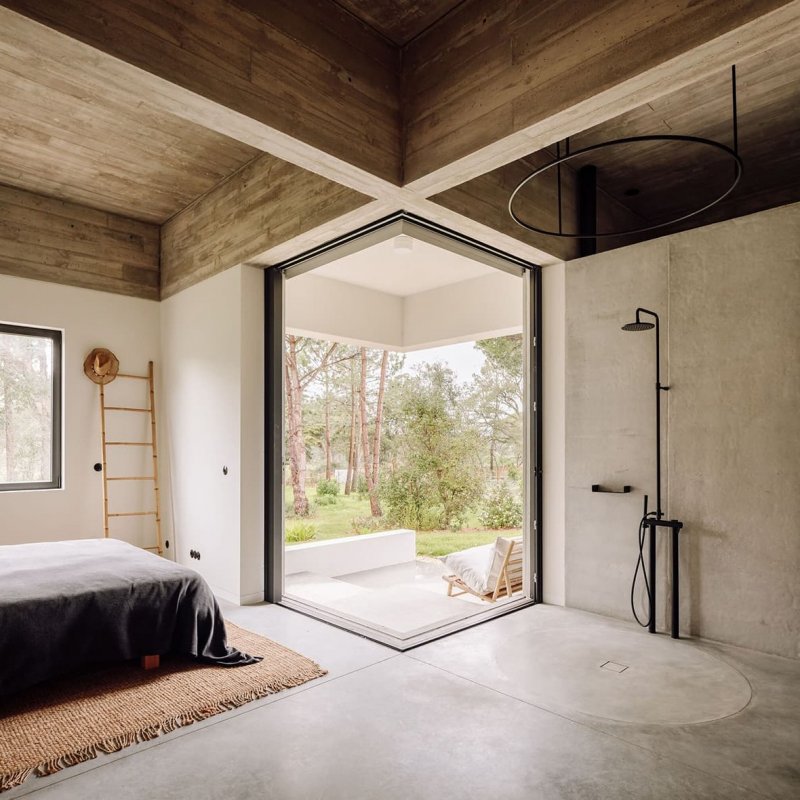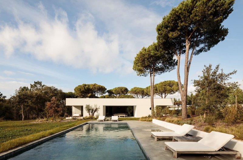 Atelier Rua обустроили одноэтажный гостевой дом на юге от Лиссабона для пожилой голландской пары. Безусловный центр проекта – гигантская видовая гостиная. В основу проектирования заложен принцип «квадрат внутри квадрата»: все помещения имеют четкую геометричную форму.