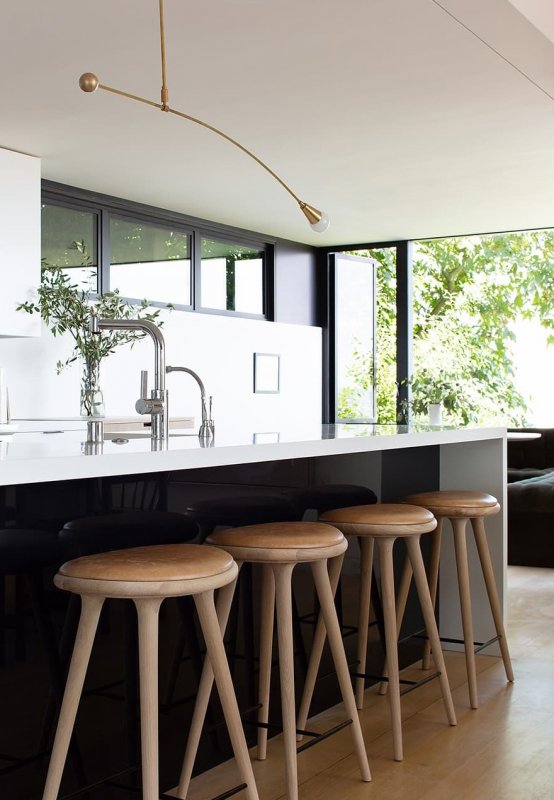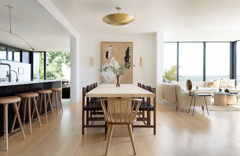 Дизайнерам JPD Interiors достался дом с пятью спальнями и роскошным видом на океан — именно вид стал главной сложностью в работе, каждая несущая стена была окном. Чтобы сохранить обзор на все четыре стороны, дизайнеры выбрали мебель с низкой посадкой. Пространство получилось воздушным, до краев наполненным солнечным светом, но при этом не слишком легковесным.