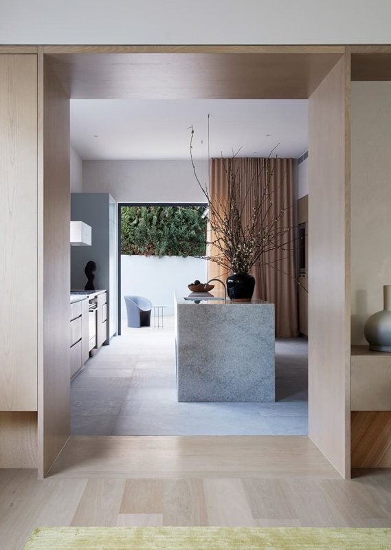 За исключением одной ярко-синей спальни все цвета в сиднейском доме приглушенные, светлые, натуральные. В проекте соединяется японский минимализм и чувственная природная палитра, присущая австралийскому побережью.