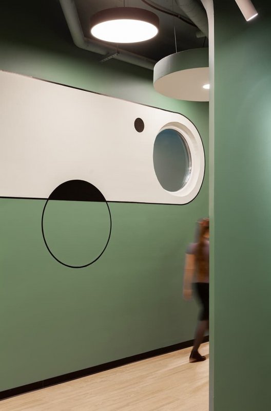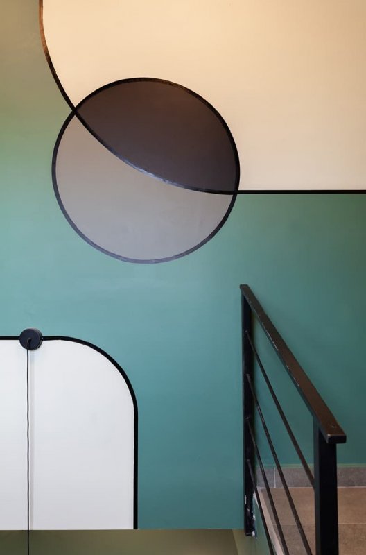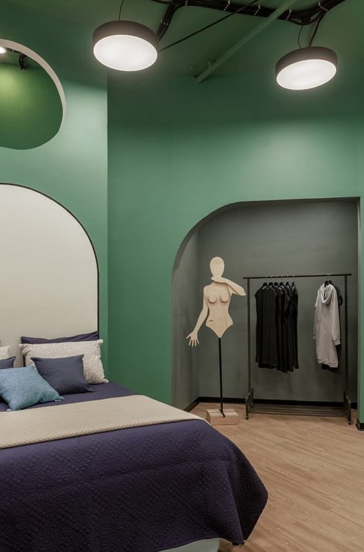 Нарочито плоская графика, которая создает оптическую иллюзию нарисованного в 3D измерения нашла применение в оформлении шоу-рума текстиля и предметов для дома.