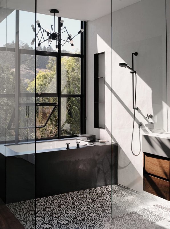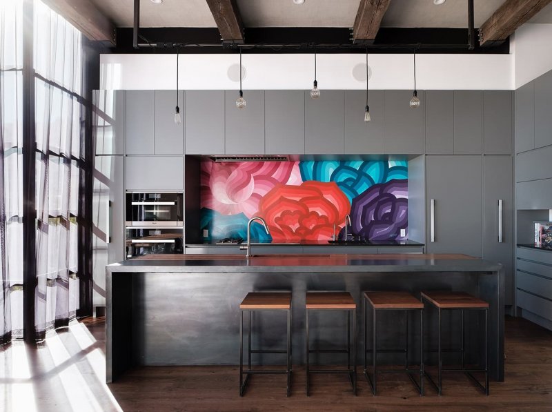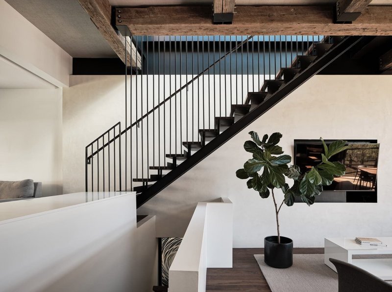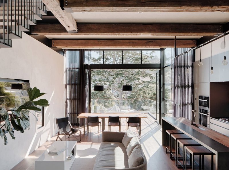 Реновация длилась два года; архитектор и дизайнер Кевин Хэккетт — давний друг семьи, выступил с позиции наблюдателя и постарался учесть все привычки и пристрастия своих клиентов, создавая «не просто дом, а жилище». Красивый атмосферный особняк типичной одноэтажной Америки получил продолжение в ультра-современных линиях и акцентах: здание расширили при помощи модернисткой конструкции со стальными балками и окнами в пол в лаконичной черной решетке. Дом имеет два входа — задний двор также может использоваться как входная зона. Само здание встроено в склон, поэтому вход в классическую часть находится уровнем ниже, чем вход в современную пристройку. Основной жилой модуль находится на верхнем этаже и состоит из открытой кухни, столовой, гостиной, ванной комнаты и спальни. Siol Studios спроектировали минималистичный светильник над островом, а также матово-серые шкафы и столешницу из черного хонингованного гранита. Вместо привычного «фартука» из плитки, кухню украшает роспись местного художника Джета Мартинеса. В качестве основного дерева, которое рифмуется в разных поверхностях, был выбран темный орех.