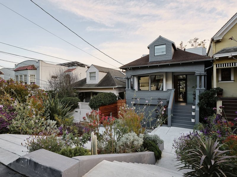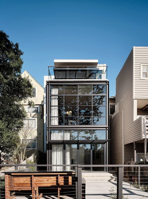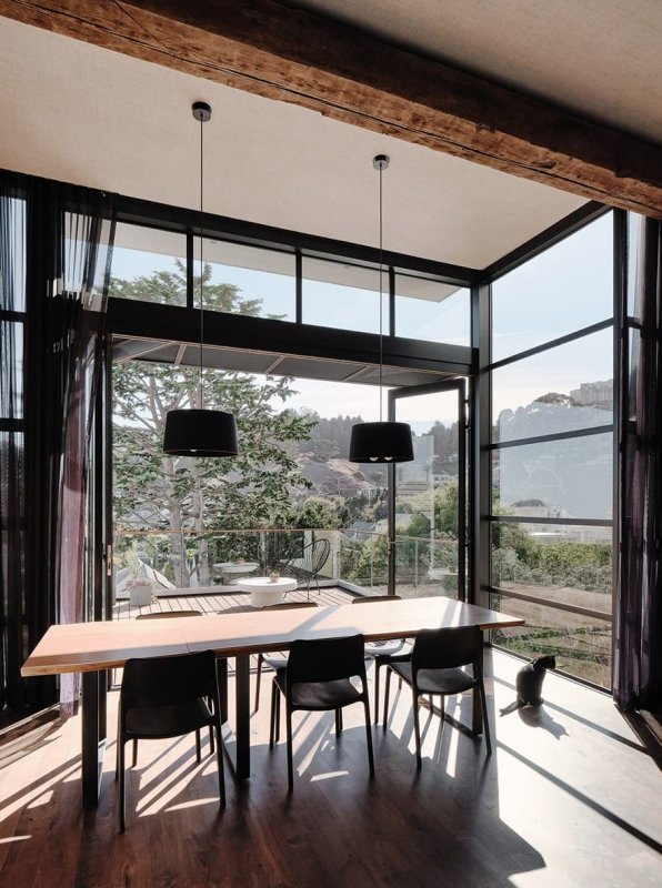 Фасад исторического особняка в районе Noe Valley в Сан-Франциско умело скрывает на заднем дворе современную стеклянную пристройку. Siol Studios и Levy Art and Architecture обновили архитектуру и интерьеры дома для пары, увлеченных коллекционеров.