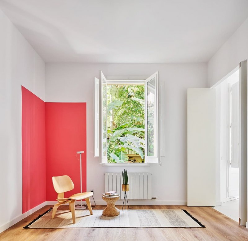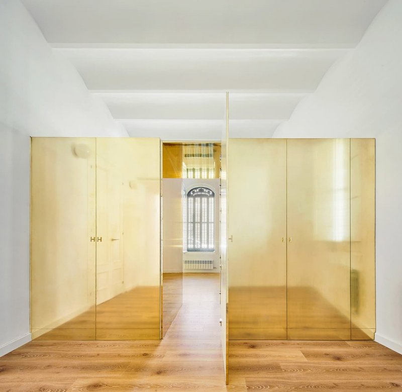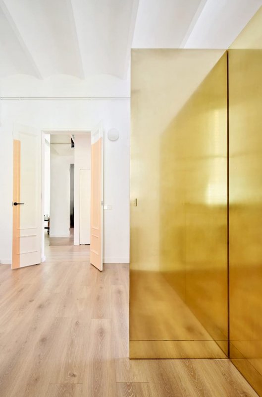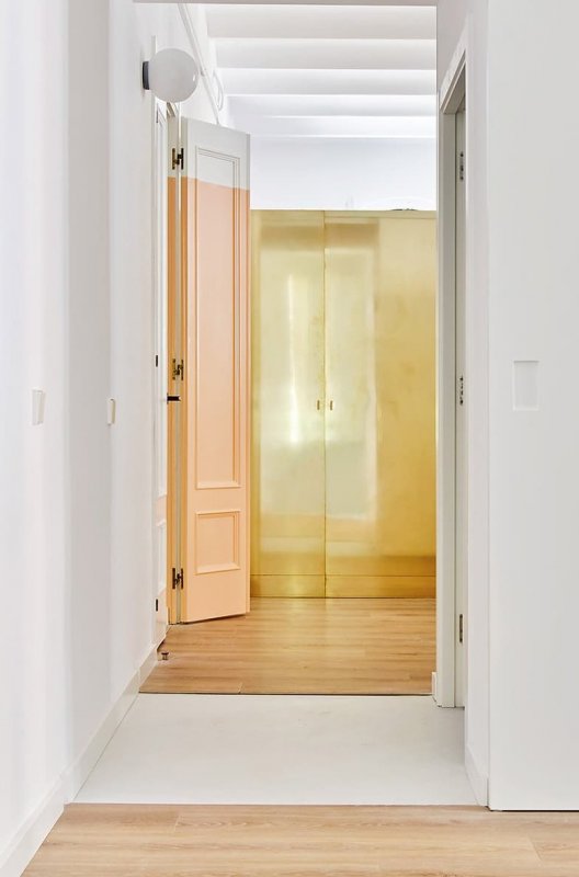 Белый цвет в интерьере не так прост, как кажется — от неправильного оттенка белого можно быстро устать. Испанское бюро Raul Sanchez Architects предвосхитили опасность при помощи акцентных выкрасов, рельефных поверхностей и латунной стены с секретом.