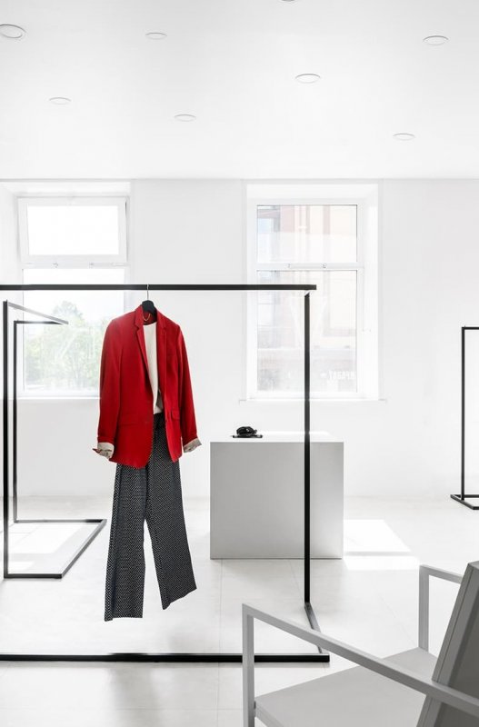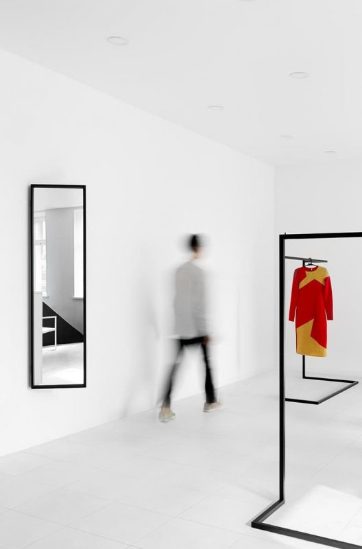 Чтобы подчеркнуть уникальность планировки — вход с улицы первого этажа сразу на второй, в середину помещения — архитектурная студия mptns обрамила лестницу в шоу-руме в наклоненный куб. Питерский магазин одежды с необычной концепцией транслирует новые смыслы, начиная с интерьера.