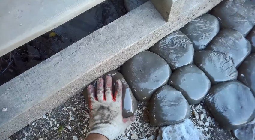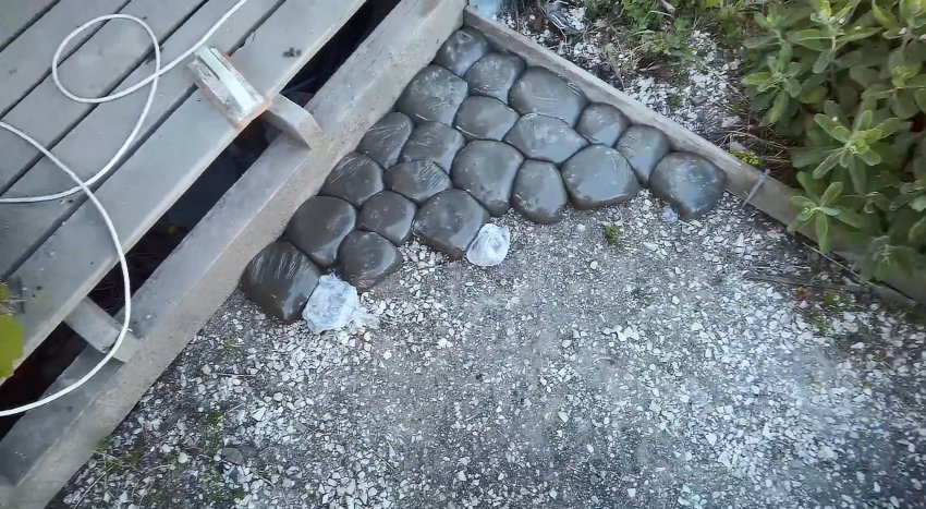 Под действием дождя и солнца летом, мороза и снега зимой, камни приобретут естественный природный оттенок и уже ничем не будут отличаться от настоящих булыжников из какой-нибудь экзотической ныне Скандинавии.