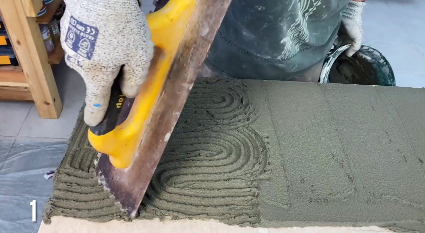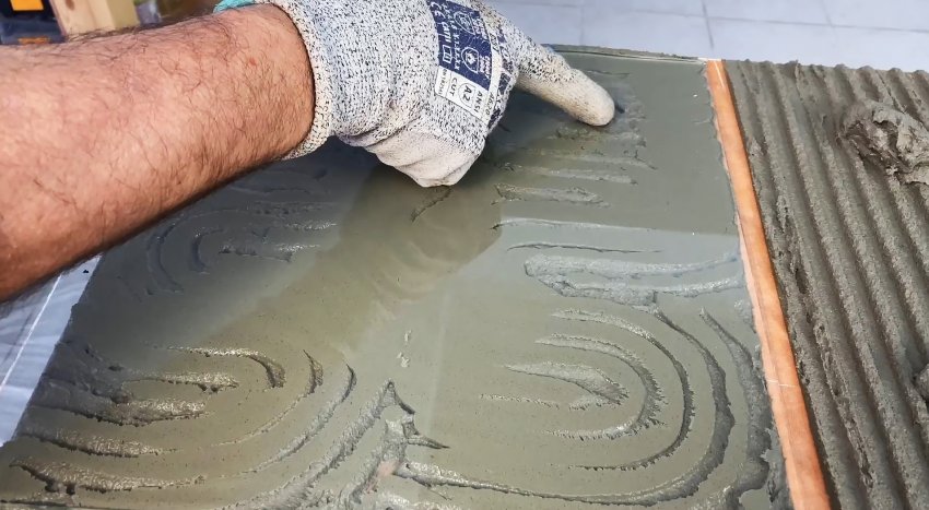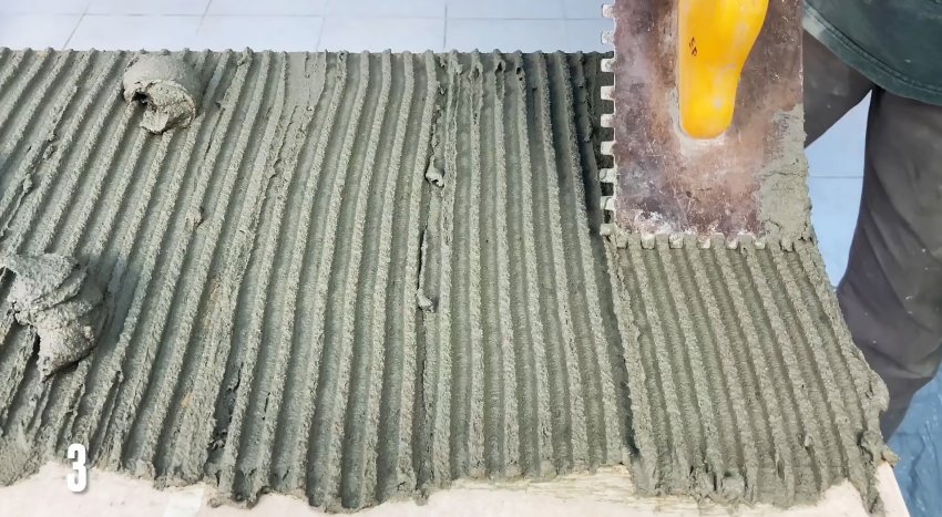 - 3 плитка – полосы шпателем должны проходить параллельно по всей длине.