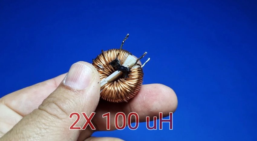 К проволоке припаиваем катушку индуктивности 100 uH.