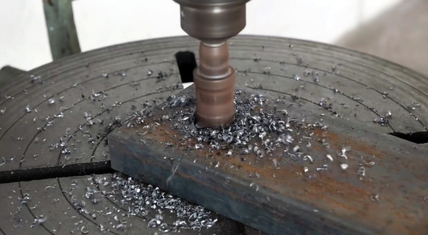 В укороченных полках швеллера сверлим по три отверстия на равном расстоянии друг от друга и нарезаем в них резьбу.