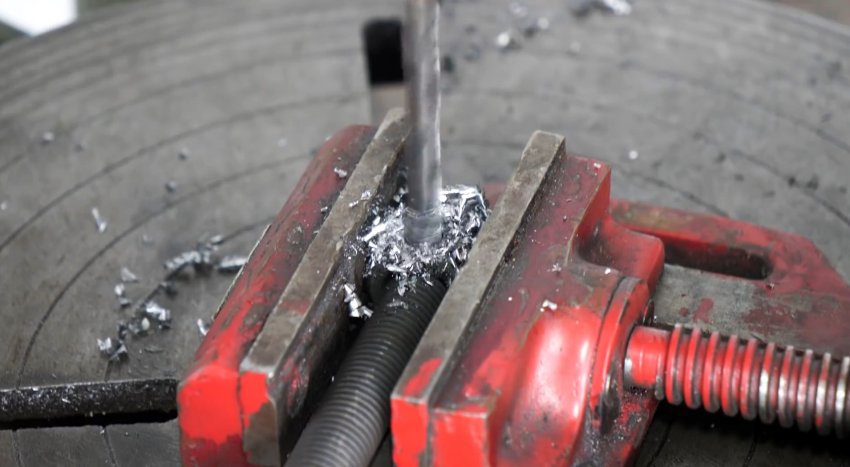Сверлим в гайке и винте сквозное радиальное отверстие.