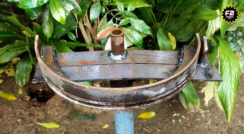 Как сделать данное приспособление подробно читайте тут - https://sdelaysam-svoimirukami.ru/7659-kak-sognut-stalnuju-polosu-na-rebro-i-sdelat-kolco.html