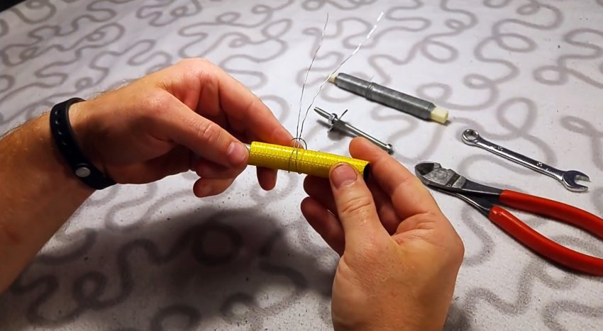 Наматываем на шланг четыре витка проволоки с небольшими концами и отделяем ее от намотки с помощью кусачек.