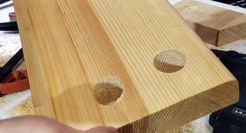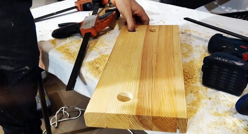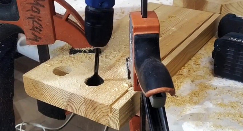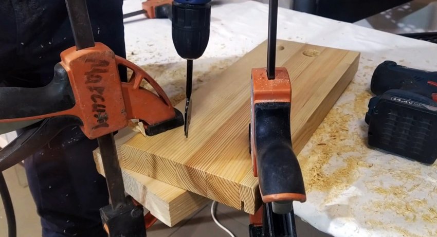 Этот метод немного попроще. Закрепите деревянную заготовку, затем к низу, где будет выходить сверло, прижмите любой деревянный брусок.