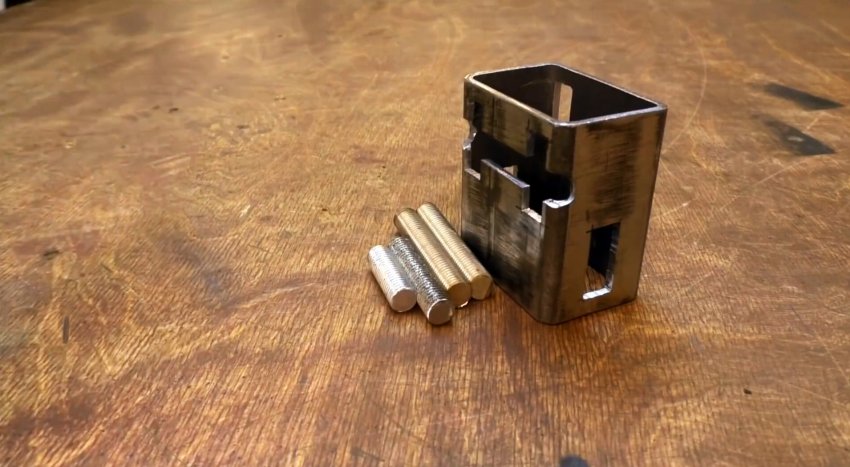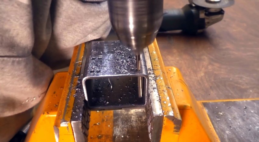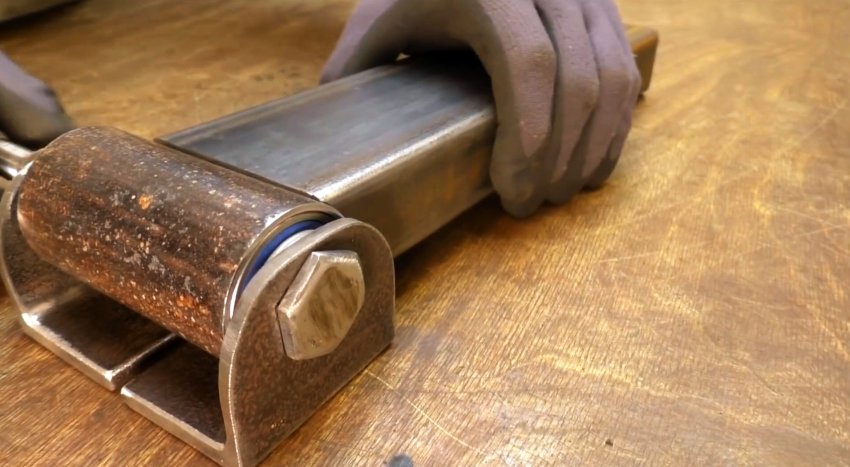 Теперь берем две заготовки из трубы 60х40 мм длиной по 7 см. В них нужно вырезать пазы, как на фото.