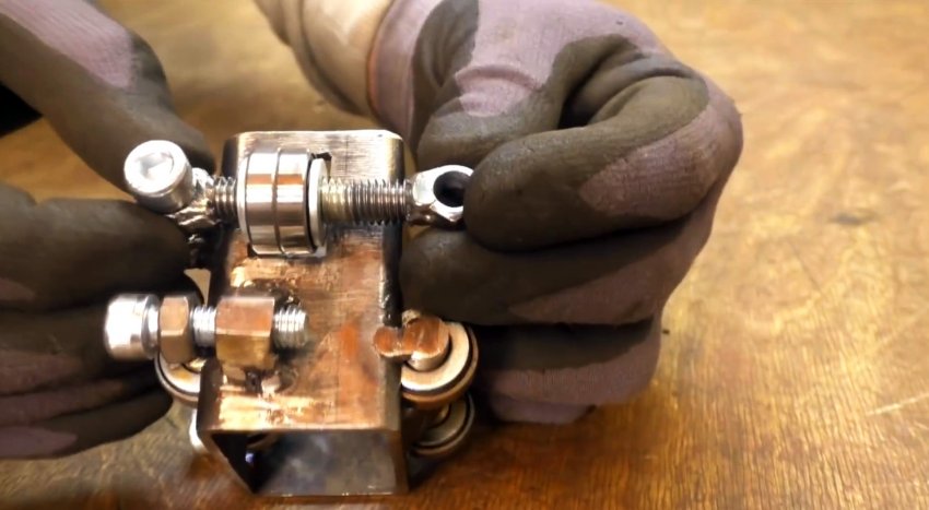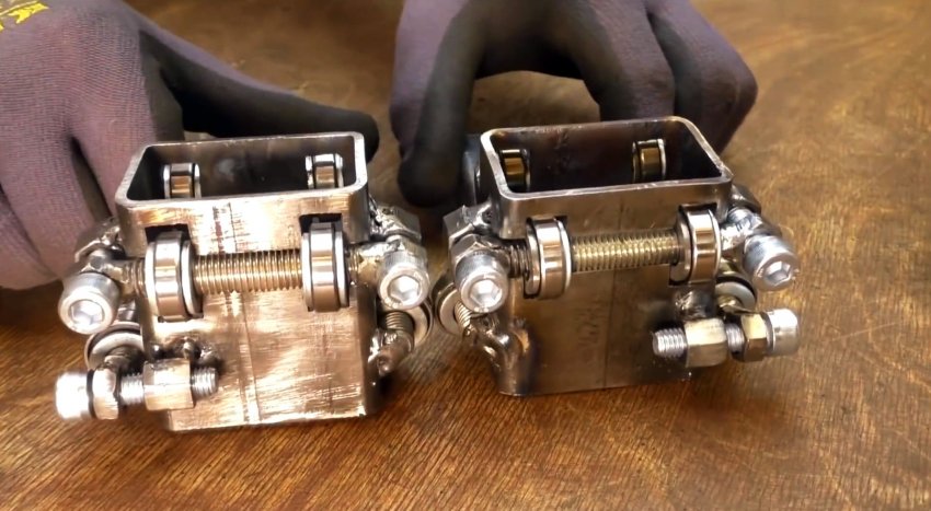 К заготовкам привариваются болты с подшипниками и шайбами. Обратите внимание, что некоторые подшипники на каретках можно регулировать.