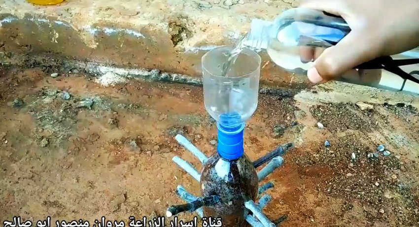 После этого в дне бутылки прожигаются паяльником дренажные отверстия.